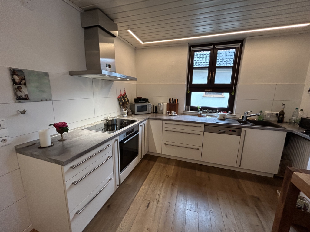 Bei diesem Wohnhaus handelt es sich um ein wunderschön-saniertes, ehemaliges Zehnthaus mit nicht einsehbarem Innenhof, malerischen Nebengebäuden und traumhaftem Garten. Das Wohnhaus besteht aus zwei Wohnungen, welche über ein Treppenhaus miteinander verbunden sind.