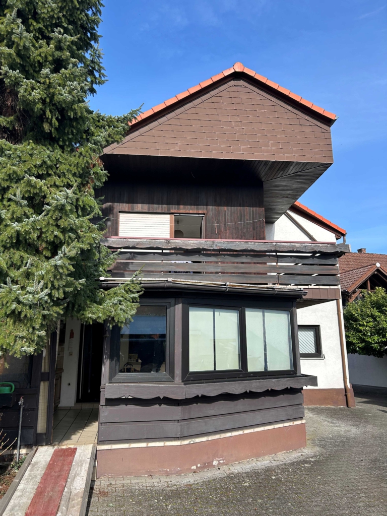 Dieses gepflegte Wohnhaus umfasst ein Haupthaus, einen Anbau, eine Doppelgarage, einen Schuppen und einen großzügigen Garten. Anfang der 1970-er Jahre wurde das Gebäude durch die Errichtung eines Anbaus deutlich aufgewertet. In diesem befinden sich die Küche sowie eine helle Sommerküche bzw. ein als Wintergarten nutzbarer Bereich. Neben dem Anbau sorgte auch der Bau einer Doppelgarage für eine Wertsteigerung des Objektes, da hierdurch komfortable Parkmöglichkeiten auf dem hinteren Teil des Grundstückes entstanden sind.Beim Betreten des Hauses gelangt man in einen großzügigen Dielenbereich. Auf der linken Seite befindet sich ein Gäste-WC, während auf der rechten Seite – in den Räumen der ehemaligen Küche- ein modernes Tageslichtbadezimmer untergebracht wurde. Das Tageslichtbadezimmer besteht aus einem WC, einem Doppelwaschbecken mit Unterschrank, einem Spiegelschrank und einer Badewanne. Geradeaus eröffnet sich der Zugang zum Esszimmer, zur Küche und zum großzügigen und hellen Wohnzimmer. Von der Küche aus führt eine Tür in die freundliche Sommerküche, die in der kalten Jahreszeit als Wintergarten genutzt werden kann.Das Wohnhaus verfügt über zwei Zugänge, dem Haupteingang sowie den zusätzlichen Eingang über die Sommerküche und bietet damit zusätzlichen Komfort und Flexibilität.Auf der rechten Seite der Diele führt eine Holztreppe in das Obergeschoss. Aufgrund des durchdachten Raumprogramms im Obergeschoss, bestehend aus einem Wohnbereich, einem Schlafzimmer, einem Badezimmer, einem Elternschlafzimmer sowie einem weiteren Raum, der sich ideal als Kinder- oder Arbeitszimmer eignet, werden verschiedene Wohnkonzepte möglich. Das Schlafzimmer und der Wohnbereich sind über zwei separate Zugänge geschickt miteinander verbunden. Neben dem Wohnbereich gelangt man in das angrenzende Tageslichtbadezimmer. Das Badezimmer mit weißer Sanitärkeramik und weißen Boden- und Wandfliesen besteht aus einer Dusche, einem WC und einem Waschbecken. Von zwei Schlafzimmern aus gelangt man auf den Südbalkon. Ein weiteres Gäste-WC komplettiert das Raumprogramm dieser Etage. Neben dem Gäste-WC führt eine Treppe in den teilausgebauten Speicher, der früher als Spiel und Schlafzimmer für Kinder genutzt wurde und auch heute zahlreiche Nutzungsmöglichkeiten bereithält.